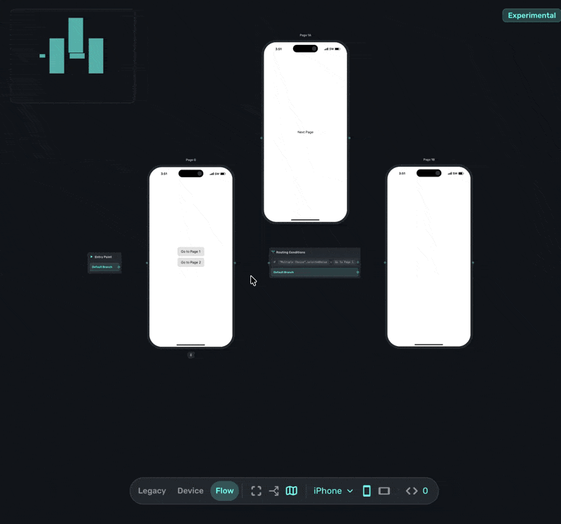 The sidebar order does not dictate which page shows next in the flow. The flow starts at the entry point and follows the routes you've created, so a page listed first in the sidebar can still appear last in the user's journey. Reordering pages in the sidebar or Canvas won't change what users see.