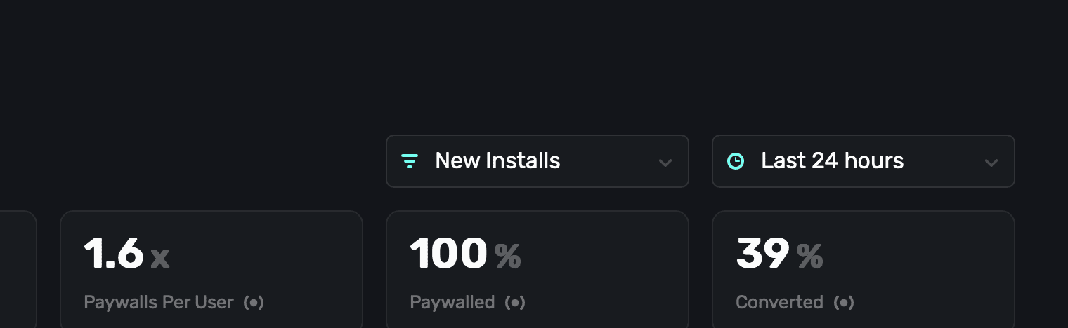 | Paywalled | The percentage of how many users were shown a paywall in total. |